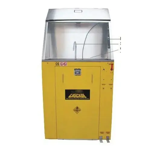 For cleaning bulky spray equipment, large work surface provides ample room for disassembly and cleaning of small parts, removable work screen with surround lip contains small parts for retrieval