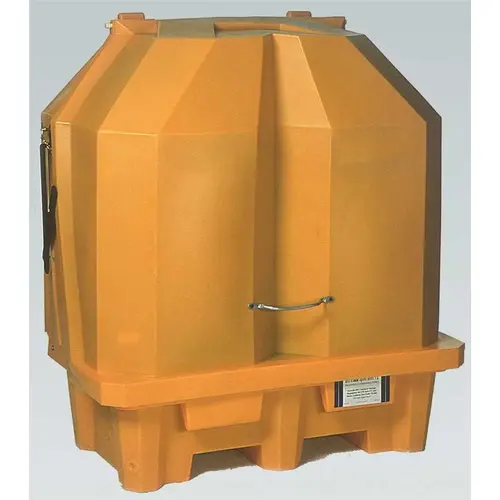 Hinged covers are easily opened by one person perfect for satellite waste collection. Drums and collection sump remain clean and dry free of rain water, debris and other contaminants. Drums are positioned on a deck above the sump area, elevated from any spilled or leaked materials. UV inhibitor in polyethylene resin resists degrading effects of sunlight, adding years to outdoor service life. Applications include storage of virgin chemicals, drum dispensing, hazardous waste collection and storage of spill response materials. 66-gallon containment capacity meets SPCC, EPA and Uniform Fire Code Spill Containment Regulations and NPDES, 40 CFR 122.26 (1999).