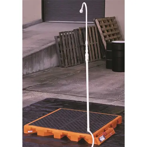 Replaces conventional containment pools contaminated water is captured in Deck sump and attached 66-gallon bladder(s). Quick and easy set-up. Privacy shelter quickly attaches to Decon Deck. Dual bladders and Deck combine to contain 176 gallons of liquid nearly one hour of continuous use. Includes Decon Deck with (2) Bladder Attachments, 12 x 14 Ground Tarp, Gross Rinse Shower Unit, Spray Wand (7gpm output), Privacy Shelter and Supply Hose.