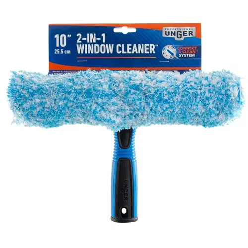 With both a scrubber and squeegee, the 10 in 2-in-1 window cleaner is a quick, easy and effective way to clean outdoor windows without switching tools. The professional quality rubber blade, absorbent microfiber sleeve and cushioned grip make the 2-in-1 window cleaner the ideal window cleaning tool. Can be attached to pole for high access cleaning.