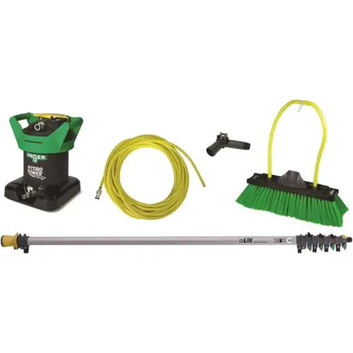 HydroPower Ultra professional window cleaning equipment is the easiest and most efficient system on the market. Longest lasting pure water system with 30% more pure water output. Pure water is the fastest and most efficient way to clean outdoor glass surfaces, leaving a spot-free finish. Cleans up to 5 stories safely from the ground with a local water source and no ladders. Produces commercial grade zero TDS (Total Dissolved Solids) water for glass cleaning and other applications that utilize deionized water. QuickChange Resin Bags allow users to change resin bags in less than 30 seconds. FloWater Technology is an innovative water distribution system that ensures more efficient water flow through the entire vessel, improving resin efficiency and increasing its lifetime. FastLock Opening for easy and quick opening and locking of the filter. Safe, self locking mechanism features a pressure release valve.