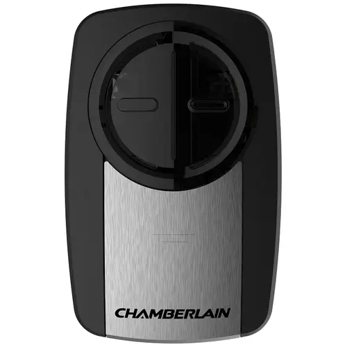 Chamberlain Garage Door Remote Control, Number of Buttons: 2, Operating Range: 800 ft, Stainless Steel, Silver, Dimensions: 3.2 in H x 2.04 in W x 0.72 in D, Suitable for: Chamberlain, Craftsman, Genie, LiftMaster, Linear, Overhead Door and Stanley Garage Doors, Includes: Batteries