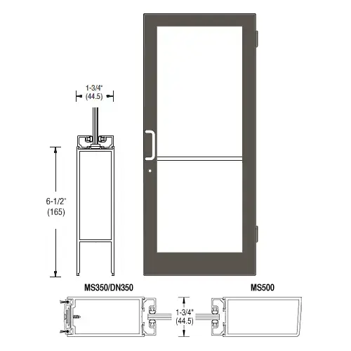 CRL-U.S. Aluminum 1DC42522LA36 Bronze Black Anodized 400 Series Medium Stile Active Leaf of Pair 3'0 x 7'0 Offset Hung with Butt Hinges for Surf Mount Closer Complete Door for 1" Glass and Standard MS Lock and Bottom Rail