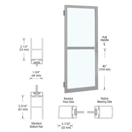 CRL-U.S. Aluminum 1DZ22511R136 Clear Anodized 250 Series Narrow Stile Inactive Leaf of Pair 3'0 x 7'0 Offset Hung with Butt Hinges for Surf Mount Closer Complete Panic Door for 1" Glass with Standard MS Lock and Bottom Rail