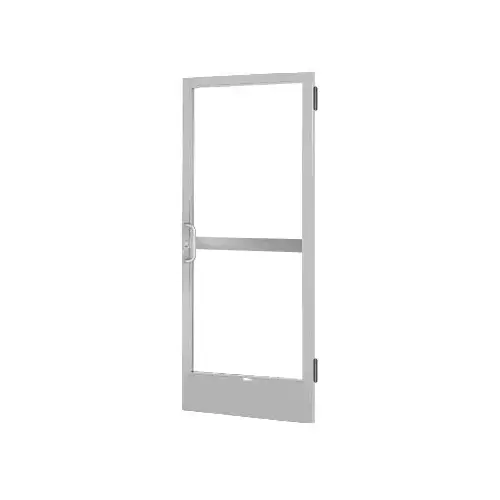 Clear Anodized 250 Series Narrow Stile Active Leaf of Pair 3'0 x 7'0 Offset Hung with Butt Hinges for Surface Mount Closer Complete Panic Door for 1" Glass with Standard Panic and 9-1/2" Bottom Rail