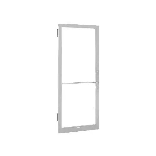 This CRL Butt Hung Entrance Door is built with standard 2" (51 mm) stiles, 2-1/8" (54 mm) top rail, and standard 3-3/16" bottom rail. Other standard features included one pair of butt hinges, push bar, Offset pull handle, hookbolt lock, lock indicator, cylinder, cylinder guard, glass stops, and glazing gaskets. You supply the 1/4" (6 mm) Clear tempered glass.