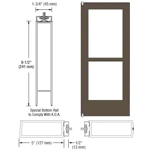 CRL-U.S. Aluminum CZ52222R136 Bronze Black Anodized 550 Series Wide Stile Inactive Leaf of Pair 3'0 x 7'0 Offset Hung with Pivots for Surf Mount Closer Complete Panic Door with Std. Panic and 9-1/2" Bottom Rail