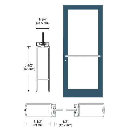 This Custom Medium Stile Entrance Door is built with 3-1/2" (89 mm) Stiles, 3-3/16" (81 mm) Top Rail, and 6-1/2" (165 mm) Bottom Rail. Standard features include stiles for Center Pivot hardware, glass stops for 1/4" (6 mm) tempered glass (by others), ready for custom fabrication for a wide range of optional hardware applications. Important Notes: Customer must install included protruding hardware (handles, pivots, etc.) that is boxed separately to prevent damage in transit. Door widths less than 36" (.9 m) may not pass A.D.A. Inspection.