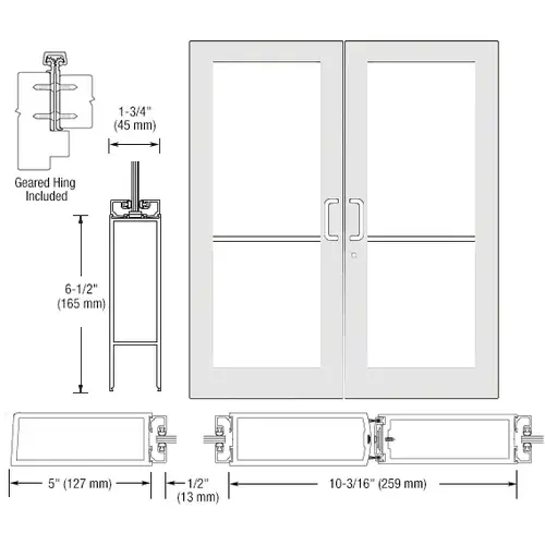 CRL-U.S. Aluminum DC52852 White KYNAR Paint Custom Pair Series 550 Wide Stile Geared Hinge Entrance Doors for Surface Mount Door Closers