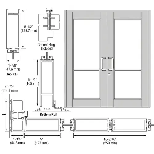 CRL-U.S. Aluminum DC92811 Clear Anodized Custom Series 850 Durafront Wide Stile Geared Hinge Entrance Doors for Surface Mount Door Closers