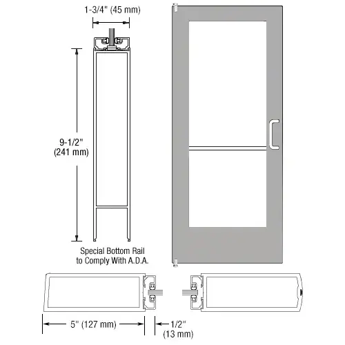 CRL-U.S. Aluminum DE52211R136 Clear Anodized 550 Series Wide Stile Inactive Leaf of Pair 3'0 x 7'0 Offset Hung with Pivots for Surf Mount Closer Complete Door Standard Lock and 9-1/2" Bottom Rail for 1/4" Glass with Standard MS Lock and Bottom Rail