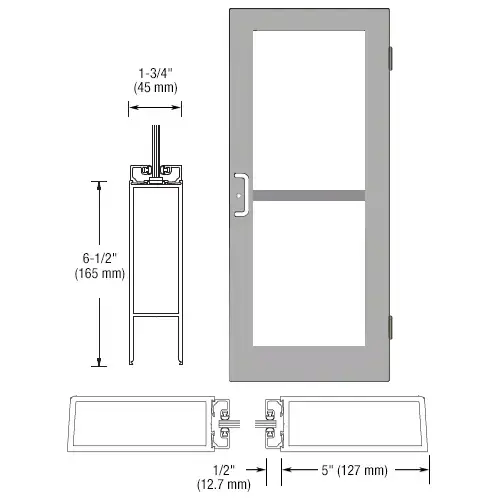 CRL-U.S. Aluminum DZ51511 Clear Anodized Custom Single Series 550 Wide Stile Butt Hinged Entrance Door For Panics and Surface Mount Door Closers