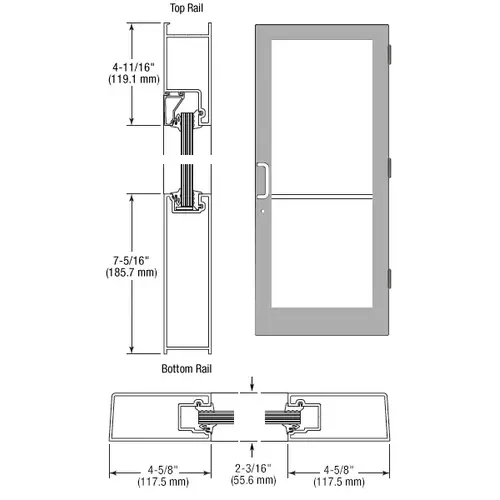 CRL-U.S. Aluminum SF41511 Clear Anodized Class 1 IG500 Series Custom Single StormFront Butt Hinged Entrance Door for Surface Mount Door Closer