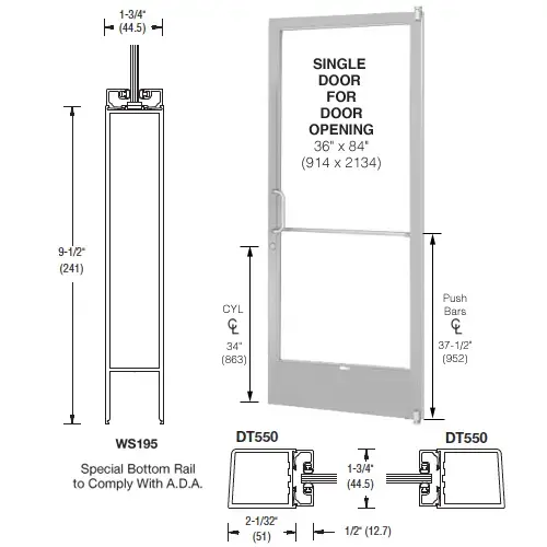 • 250 Narrow Stile Door with 9-1/2" (241 mm) ADA Bottom Rail for a 36" x 84" (914 mm x 2.13 m) Door