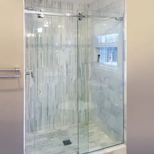 One - 78-3/4" (2 m) Length Header Bar Four - Rollers One - Stopper Two - Track Holder Fittings for Wall Two - Track Holder Fittings for Fixed Panel One - Thru-Glass Pull One - Door Guide One - 85" (2.16 m) Clear L-Jamb