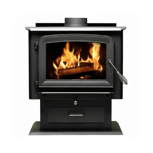Help provide your home with warmth and comfort with the Ashley hearth products AW2520E-P 2500 sq-ft large size plate steel wood stove. The AW2520E-P wood stove accepts logs up to 21 in which reduces time spent filling the stove for long burn times. The Ashley AW2520E-P has an efficient 1,12,800 Btu and can heat up to 2500 sq-ft. This elegant wood stove is approved for mobile homes and features a large pedestal base with integrated ash pan and a large, arched glass door with nickel door handle. The AW2520E-P wood stove meets the stringent requirements of the EPA "Step 2" 2020 certification guidelines. The AW2520E-P model replaces the previous US Stove Company models 2500 and 2500LN along with the Vogelzang performer TR009 wood stoves.