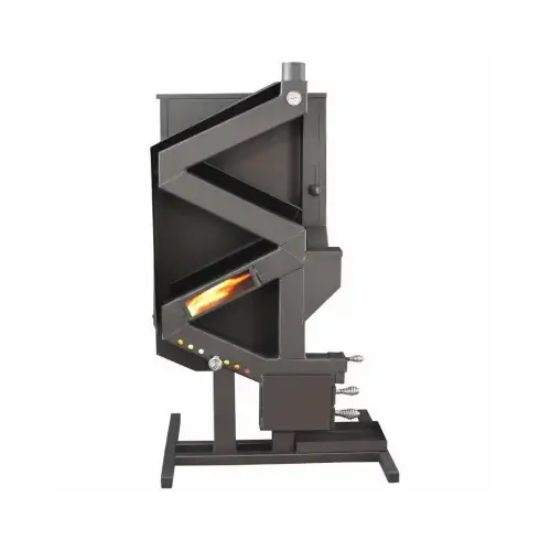 The GW1949 Wiseway from US Stove eliminates the need for electricity by utilizing a natural gravity feed system that eliminates all of the typical electrical and mechanical parts found in traditional pellet heaters. This patented revolutionary design is the only EPA certified and UL listed non-electric pellet stove on the market today. The Wiseway is simple to start and operate. Simply heat the burn chamber and flue with a propane torch and start the pellet flow. This stove uses a natural draft that will take over and ramp the stove up to temperature. Adjustments are simple by opening and closing fresh air intakes on the front of the stove. The window allows you to see the flame traveling up the body of the stove. Since it uses no electricity, heat is radiated off the 3.5 in tubing and the steel baffles on the back. Best of all, this stove offers extremely small clearances on the rear and sides making it easy to install. Impressively, since it does not use any electricity this stove is the perfect source of heat for areas that are prone to blackouts or off the grid installations.