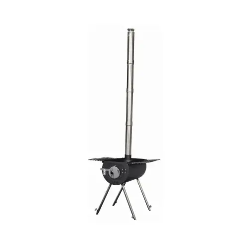 US Stove company's caribou camp stoves were developed to bring our home heating knowledge to the outdoors. Designed with the necessary features to be the addition to any expedition gear. The Caribou Backpacker is lightweight and easy to pack allowing it to go anywhere you need to keep you warm. In areas where open fires are not permitted this portable stove could be a handy item to have. Each stove comes packed neatly in a non-rattle carry case with all 6 ft of the chimney pipe, legs and racks making them extremely portable. The ample 73 sq-in cooking surface allows for plenty of room to cook a meal for your group and the included racks are great for drying gloves, socks and other small items after a soggy hike. The racks also allow for indirect heat cooking of baked potatoes, foil wrapped meats and also fold up to be used as an easy to carry handle. The included legs have extendable feet to allow for use on uneven surfaces. The caribou backpacker model is perfect for small to medium sized tent installations yet weighs only 14 lb making it a welcome addition to any gear set. The caribou backpacker stove also makes a great gift idea for your favorite camper, fisherman (great for ice-fishing), hunter or lover of wood-burning stoves.