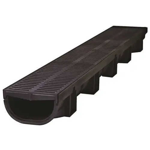 Compact Series 39.4 in. L x 5.4 in. W x 3.2 in. D Trench and Channel Drain Kit with Black Grates (: 39.4 ft.) - pack of 12