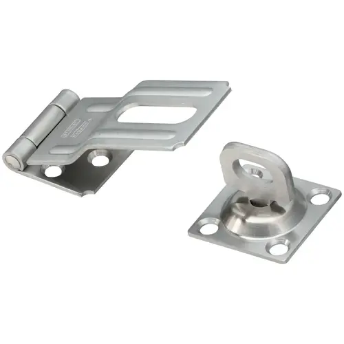 -National Hardware's 3-1/4" Stainless Steel Safety Hasp is designed to secure a wide variety of doors, cabinets, boxes, and trunks
