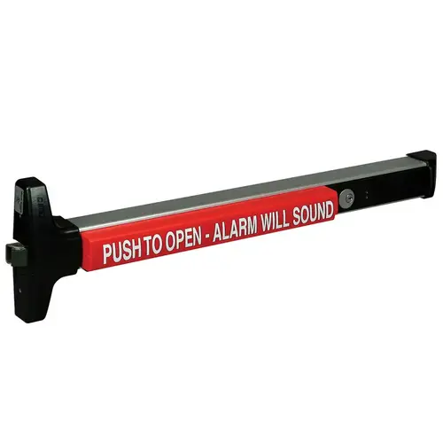 Value Series Narrow Stile Rim Exit Device, Cylinder Dogging, 99 Surface Strike, Battery Operated Alarm, 36 In. Device, Satin Aluminum Clear Anodized