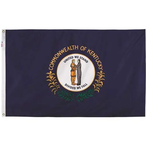 This beautiful 3 ft. x 5 ft. nylon Kentucky state flag is constructed with 100% nylon. The state flag emblem is accurately reproduced to fine detail. This flag comes with a heading and brass grommets for easy flagpole attachment.