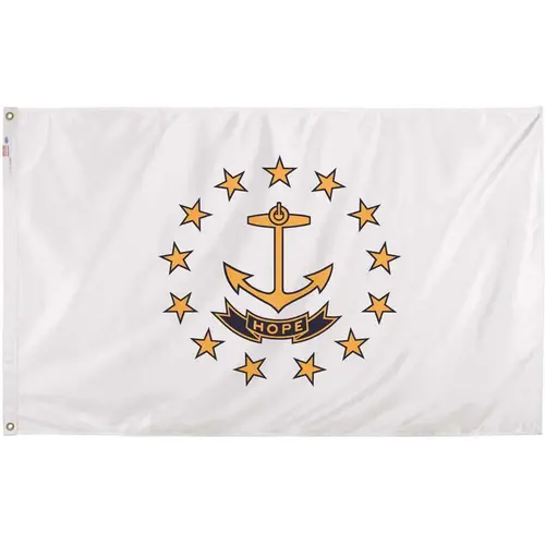 Valley Forge Rhode Island Flag with Brass Grommet, Legend: HOPE, Nylon, 5 ft Length, 3 ft Width