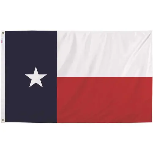 This beautiful 3 ft. x 5 ft. nylon Texas state flag is constructed with 100% nylon. The state flag emblem is accurately reproduced to fine detail. This flag comes with a heading and brass grommets for easy flagpole attachment.