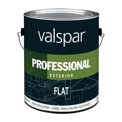 Valspar professional exterior flat is a 100% acrylic, professional quality, exterior latex paint developed to provide outstanding durability, fade resistance and mildew resistance. It can be applied at temperatures as low as 35 deg F allowing you to extend the painting season. Professional exterior flat provides a smooth, uniform finish with spray, brush or roller application and can be applied to a variety of exterior surfaces - wood and metal siding, trim including hardboard, fiber cement board, vinyl, shakes, primed metal, brick, cement, cinder block and stucco.