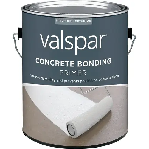 Valspar Primer, Concrete Bonding, Clear, Odor/Scent: Slight, Net Content: 1 gal, Pail, Compositions: Paraffin Oil, Viscosity: >20.5 cSt, Vehicle Type: Acrylic Resin, 250 sq-ft/gal Coverage Area, VOC Content: >100 g/L, Application Method: Brush, Flash Point: 205 deg F, Boiling Point: 212 deg F, Application Temperature: 50 to 90 deg F, Density: 1, Specific Gravity: 1.02, Applicable Materials: Metal, Steel, Drying Time: 1 hr, pH Range: 9