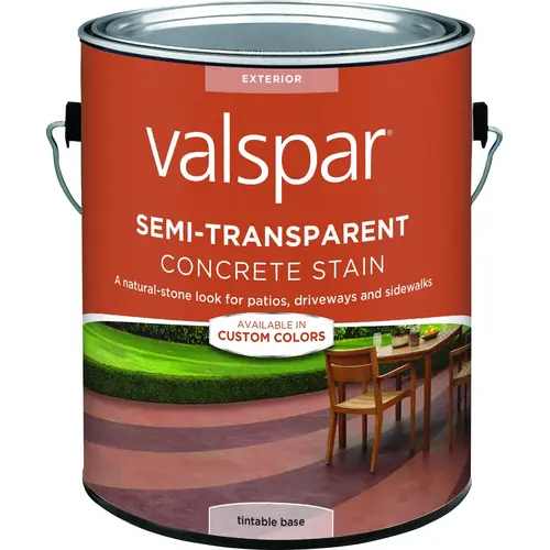 Transform your outdoor space into a beautiful retreat with Valspar semi-transparent concrete stain. Highly versatile and easy to apply, the stain lets you achieve a natural look with one color or take it to the next level with multiple colors or patterns. Durable formula provides long-lasting decorative color while protecting from weather and household-chemical damage. Semi-transparent concrete stain imparts a low gloss.