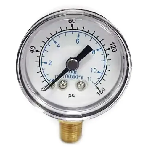 Pressure Gauge: 1-1/2" Dial, 160 psi, 1/8" Thread, NPT, Lower Mount