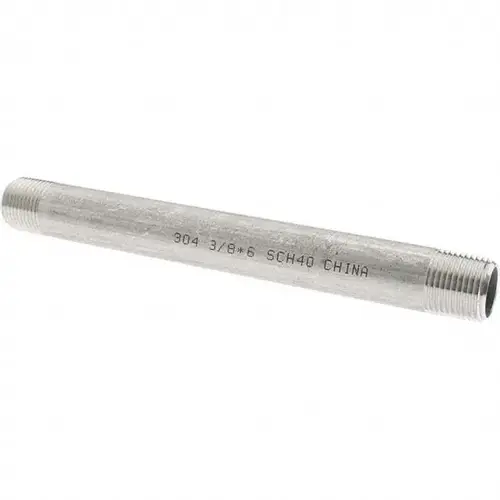 Value Collection 4BN3/8*6 Stainless Steel Pipe Nipple: 3/8" Pipe, Grade 304 & 304L