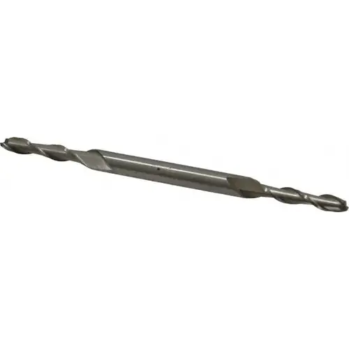 Square End Mill: 9/64 inch Dia, 3/4 inch LOC, 3/16 inch Shank Dia, 3-1/8 inch OAL, 2 Flutes, Cobalt Double End, Uncoated, Spiral Flute, 30 degree Helix, Centercutting, RH Cut, RH Flute