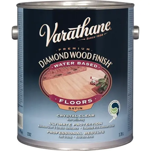 Varathane premium diamond floor finish provides protection for your wood that is diamond hard, diamond clear and diamond beautiful. Varathane premium diamond floor finish is specifically developed to enhance the natural beauty of wood while providing the best protection available against heavy foot traffic. Varathane water-based finishes will stay crystal clear over time to give your floor a contemporary feel.