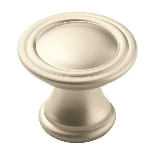 The Amerock BP24009SN Vasari 1-3/16 in (30 mm) Diameter Knob is finished in Satin Nickel Matte.