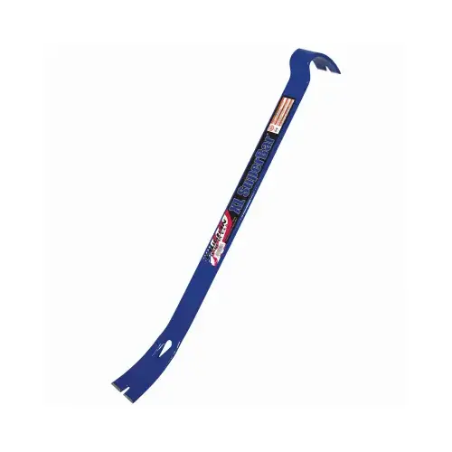 B215L superbar 21 in is an essential tool for homeowners and tradesmen. "Shepherd's crook" rocker head design for maximum prying power. Useful for prying molding, scraping and pulling nails. Forged, spring tempered steel for heavy-duty use. Rust-resistant powder coat finish. Three beveled nail slots polished, sharp blades for easy insertion. Made in USA.