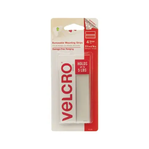 4 Count, 3.5" x 3/4", Velcro Removable Mounting Strips, Holds Up To 5 LB, Damage Free Hanging.