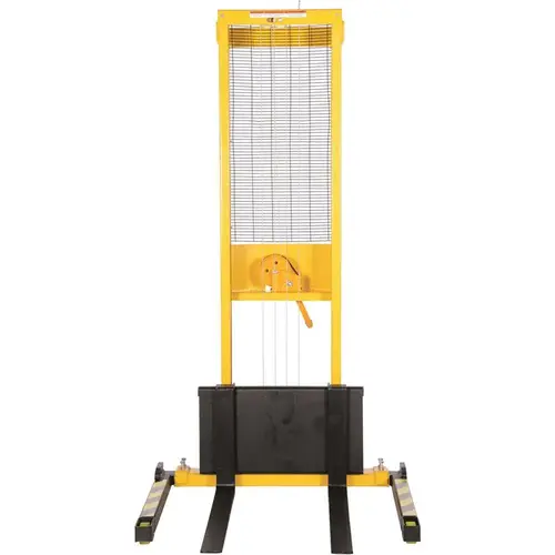 Vestil Adjustable Manual Hand Winch Stacker 770 Lb Uniform Capacity 1-9/16" Lowered Height 60" Raised Height 24" Horizontal Load Center 35-1/2" Straddle Leg Minimum 47-1/4" Straddle Leg Maximum 6" Fork Adjustment Minimum 24" Fork Adjustment Maximum 6" Rear Caster Diameter 4" Front Wheel Diameter 1" Lift Per Handle Revolution Mfg #VWS-770-AA