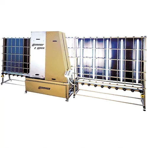 The CRL 60" (1524 mm) Open Top Vertical Glass Washer can wash glass to 60" (1524 mm) in one pass, and up to 120" (3048 mm) in two passes. The machine will operate from 4' to 18' per minute (1.2 x 5 mpm), and has a load capacity of 300 lbs. (136 kg). You can wash glass from single strength to 1/2" (12 mm) thick, and from a minimum size of 4" x 16" (102 x 406 mm) long. A small parts option is available to reduce the minimum glass size to 4" x 12" (102 x 305 mm) long. Frame components in contact with the washing areas are made of stainless steel. Recirculated heated detergent, recirculated miser rinse, and a fresh water electric solenoid valve are standard. Also included are glass inspection lights on the exit conveyor. The four brushes are Low-e compatible. Set-up and maintenance is easy, without a factory service technician.