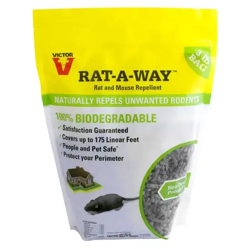 Looking for a way to deter rodents before they can set up residence in your home, Victor Rat-A-Way rat repellent targets rodents sense of smell, making it a safe and effective way to repel rats and mice away from your home or elsewhere on your property. In addition, Victor Rat-A-Way is easy to use. Simply spread a 1 to 3 in band around the perimeter of the area you would like to protect. The best part is it's all-natural.