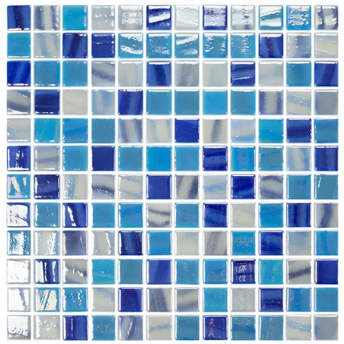 TileXpressions Cloud Mix (PB-XCM1) is a 1"x1" glass mosaic swimming pool tile designed for waterlines and walls. Its durable, glossy finish ensures lasting vibrancy, offering easy installation for residential or commercial pools with a shimmering, cloud-like multicolor aesthetic.1"x1" glass mosaic; designed for pool waterlines and walls.Suitable for indoor/outdoor wet areas; mounted on 12"x12" mesh sheets.Apply with thin-set mortar on concrete; tools: trowel, tile cutter; use non-sanded grout.Multicolor cloud effect enhances pool elegance; durable glass resists wear, fading.