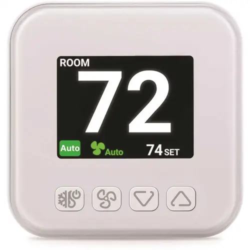 VTech 24V Wired Universal Thermostat. Universal 24v Wired Thermostat With Large 2.8" Dimmable Display. Compatible With Ptac, Vtac, Heat Pump, And Conventional Hvac Systems. Supports Gas Or Electric Systems. C-Wire Power Required. Mounts Directly To A Wall Or Junction Box. Fast, Secure Setup With The Free Ec Tool Pro App For Android Or Ios. Heat, Cool, And Auto Changeover Modes. Customizable Temperature Thresholds. Optional 7-Day Programmability. Manufactured With Antibacterial Plastics Tested To Inhibit 99.9% Of Bacterial Growth. 3-Year Limited Warranty. Configuration Tool: Ec Tool Pro App. Provisioning Method: Bluetooth Provisioning Via Ec Tool Pro App For Ios / Android. Mfg #80-T122-01