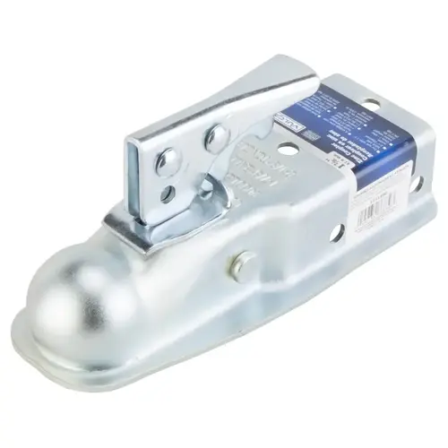 Vulcan Trailer Coupler, 2000 lb Towing, 1-7/8 in Trailer Ball, 2-1/2 in Channel Width, Lock Hole: 10.4 mm, Lever Latch, Steel, Zinc, Silver