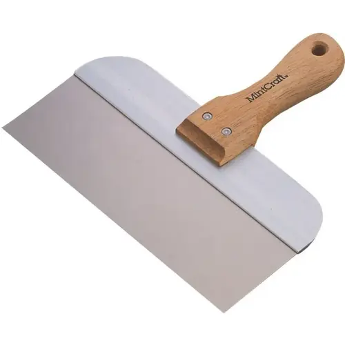 Premium stainless steel blade with aluminum backing plate. Blade is tapered so you can run corners faster and easier. Wood handle is securely attached.