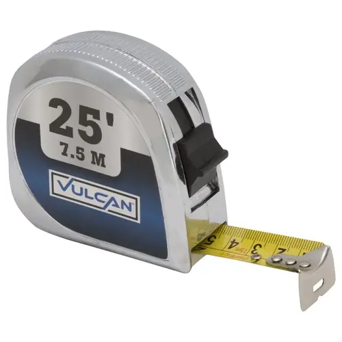 Vulcan 62-7.5X25-C-XCP24 Tape Measure, 25 ft L Blade, 1 in W Blade, Steel Blade, ABS Plastic Case, Silver Case - pack of 24