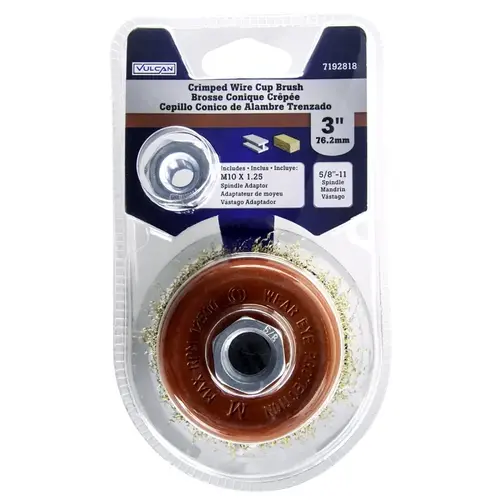 The Vulcan Coarse Grade Wire Wheel Brush is made with tough, durable carbon steel wire. Usage for removal of paint, rust and scale on wood, metal and plastic.