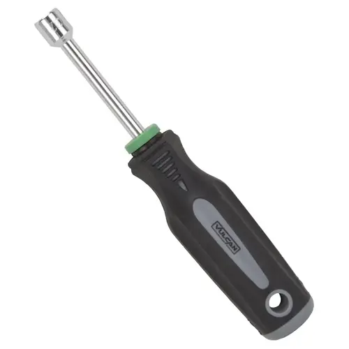 The Vulcan Nut Driver has a chrome plated carbon steel blade, soft cushion grip provides greater comfort and control. The thumb stop allows for added torque. This tool is color coded.