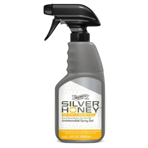 The first product to combine the natural power of Manuka Honey and MicroSilver BG, Silver Honey Hot Spot & Wound Care is dog wound care that's tough on bacteria but gentle on skin. Proven to stop 99.9% of bacteria immediately to start healing faster, its revolutionary formula provides long-lasting protection and moisturizes the treatment area. Fast-acting antibiotic-free treatment of hot spots, dermatitis, cuts, abrasions, sores, rashes and lesions. Ingredients: Allantoin, Azadirachta Indica (Neem) Seed Oil, Benzyl Alcohol, Calendula Officinalis Flower Extract, Carbomer, Denatonium Benzoate (bittering agent), Ethylhexylglycerin, Glycerin, Honey, Isopropyl Myristate, MEL (Manuka Honey), Panthenol, Phenoxyethanol, Polyglyceryl-4 Caprate, Propylene Glycol, Purified Water, Silver (MicroSilver BG), Sodium Hydroxide, Zinc Gluconate