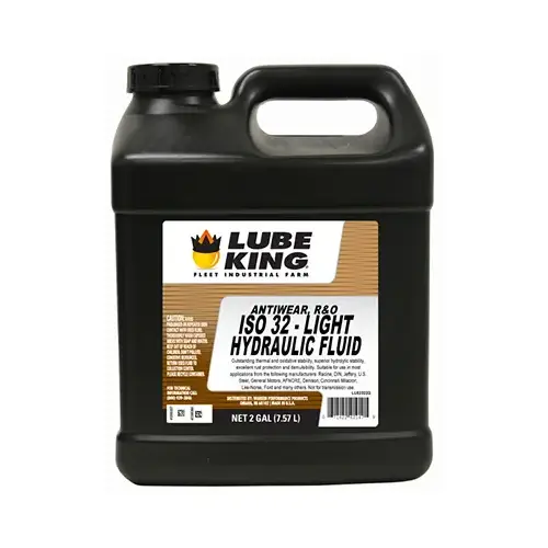 Lube King, 2 Gallon, AW ISO 32, Hydraulic Fluid, Exceptional Protection Against Wear From Contaminants & Higher Operating Temperatures & Pressures Ensures Longer Equipment Life, Maintains Viscosity, Even Under Higher Operating Temperatures, & Has Sufficient Reserve Of Key Additives, Resulting In Longer Fluid Life & Reduced Operating Costs & Reduced Foaming Ensures Smooth, Efficient Operation & Proper Lubrication Of All Parts In The System, Specific Gravity @ 60 Degrees Fahrenheit, 15.6 Degrees Celsius, 0.8631 Viscosity @ 40 Degrees Celsius, 32.11 Viscosity @ 100 Degrees Celsius, 5.55 Pour Point Degrees Celsius, -33 Degrees Celsius, -28 Degrees Fahrenheit, Viscosity Index 110.